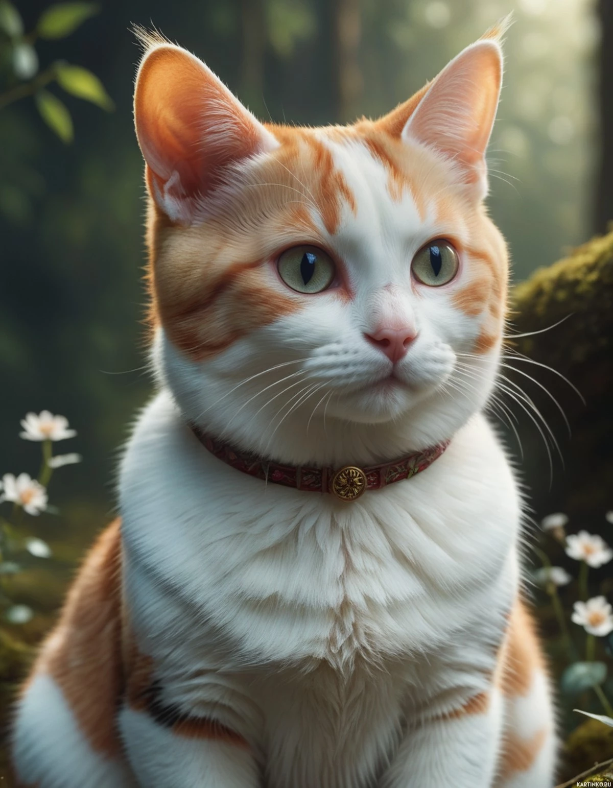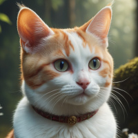a forest setting. The cat has an orange and