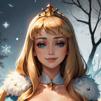 The image features a digitally created character who appears to be a young female with blonde hair, wearing a crown and adorned with regal accessories such as jewelry. She is dressed in elaborate armor that suggests she might be from a fantasy setting or representing a warrior or royal status. The background has an ethereal quality with what seems to be misty trees, contributing to the overall fantastical theme of the artwork.