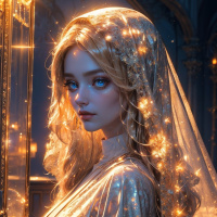 the magical atmosphere of the image. The lighting in the picture highlights her face and upper body, creating an intimate and serene ambiance. It's worth noting that the image is stylized and likely digitally enhanced or created from digital
