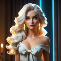 white hair and striking makeup. She is depicted wearing tight