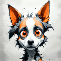 The image features a stylized illustration of a chihuahua. It has a combination of orange, white, and