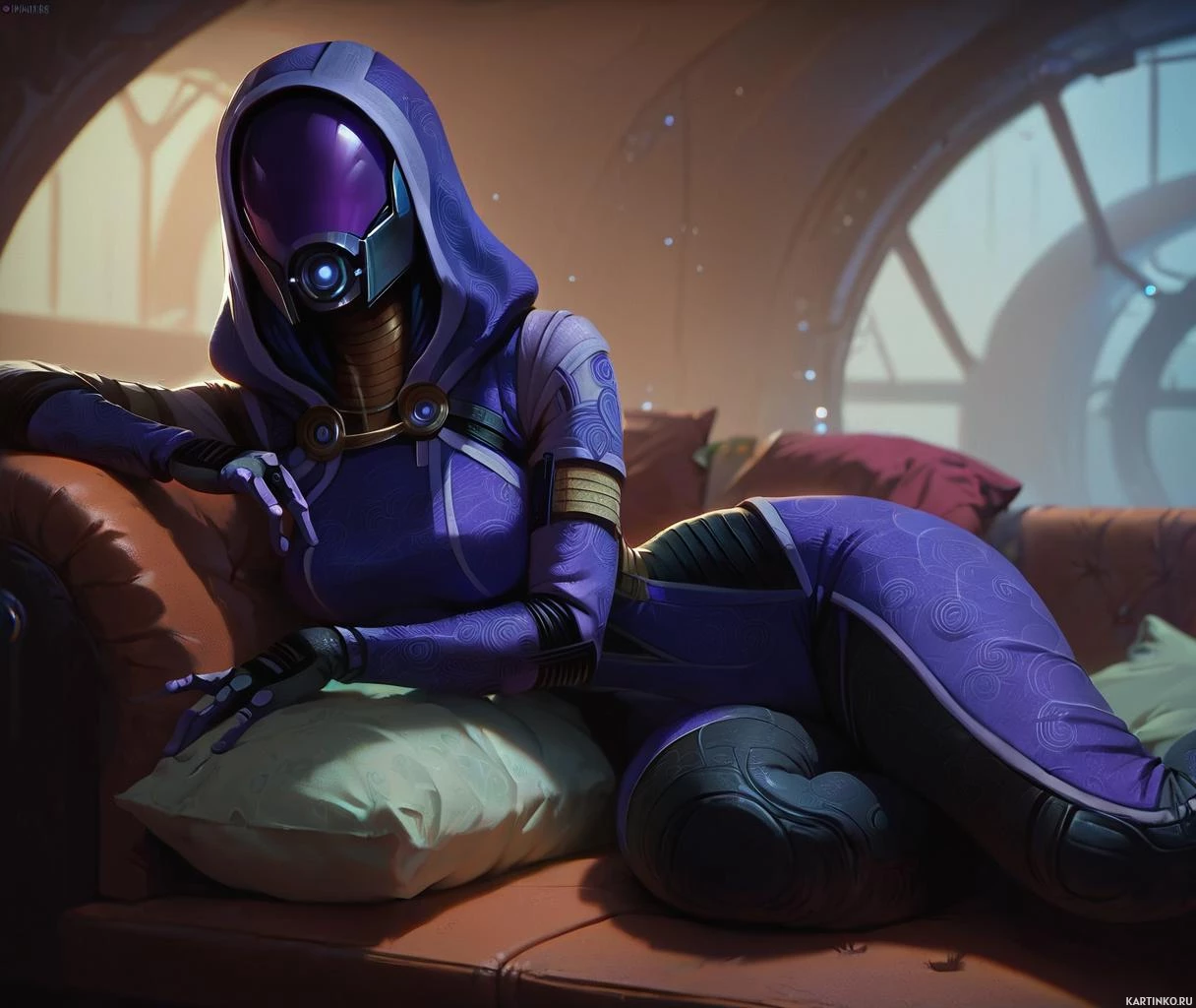 role in the game as an Asari scientist and crew member aboard the Normandy. She is depicted wearing her