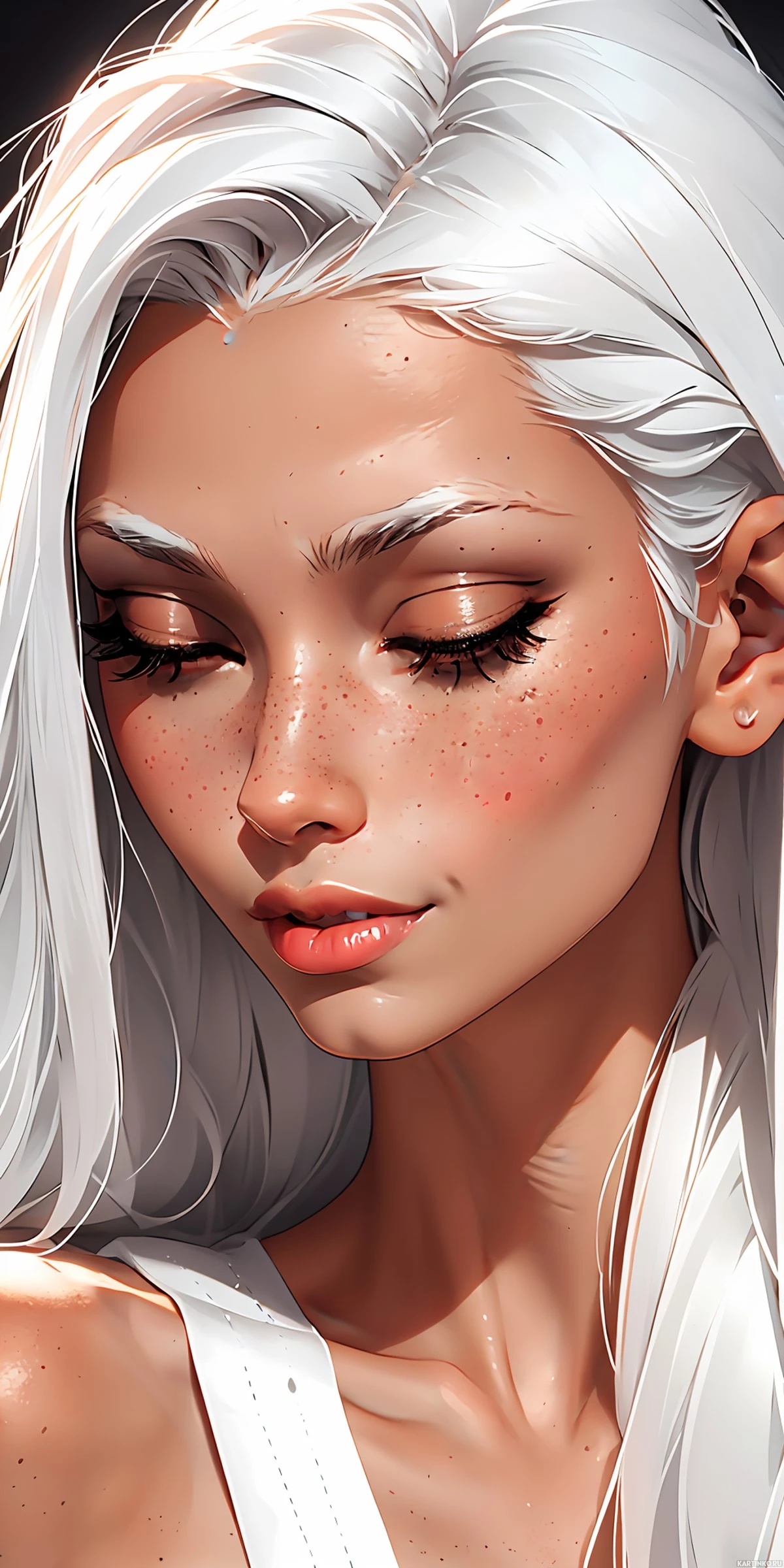 a slight tilt of the head towards her shoulder, giving it a relaxed yet poised feel. The background is plain and does not contain any distinctive features, which puts the focus entirely on her face and hair.