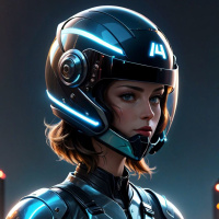 female character wearing futuristic armor. She has short, light-colored hair and her expression is neutral with subtle details that suggest she might be surprised or focused. Her attire includes a helmet with what appears to be