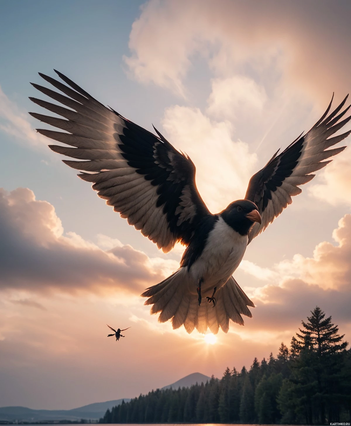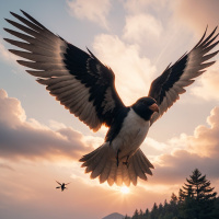 The image depicts an eagle flying in