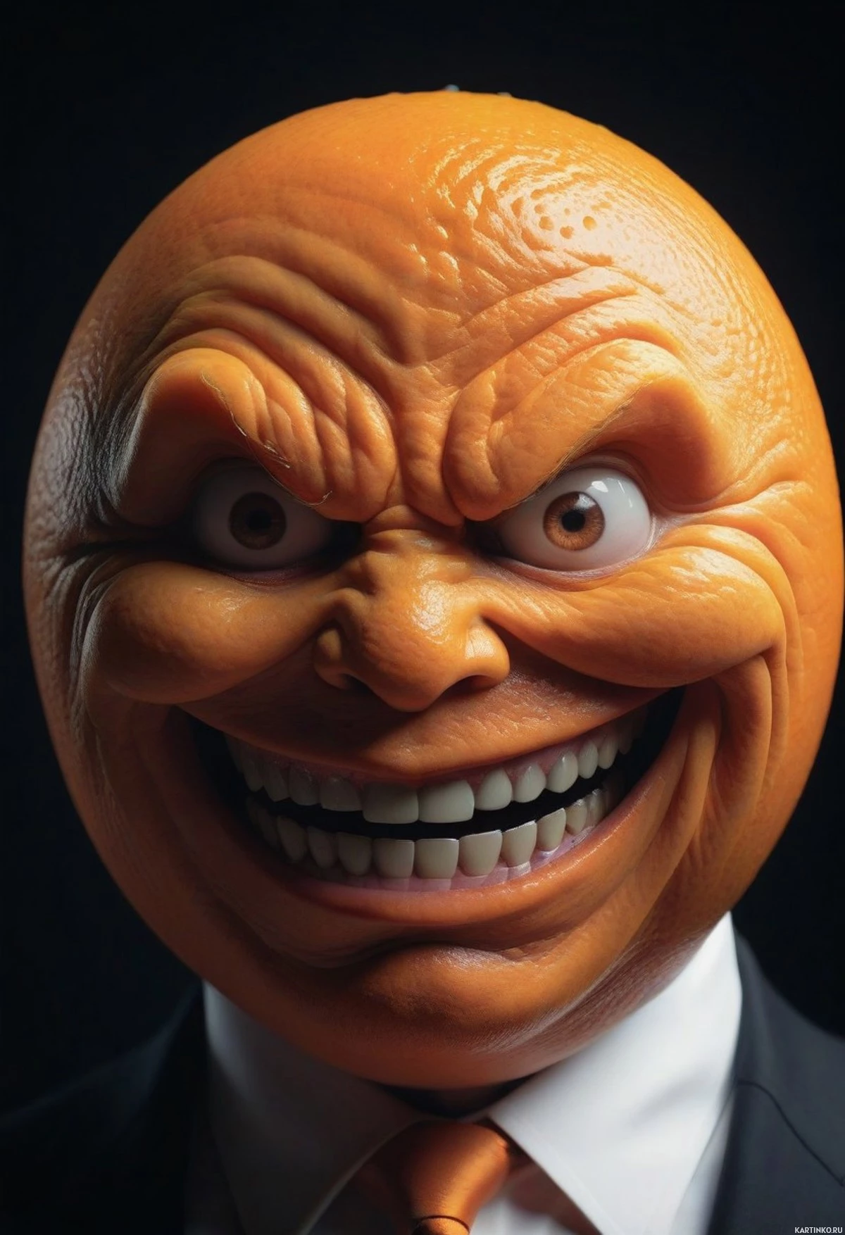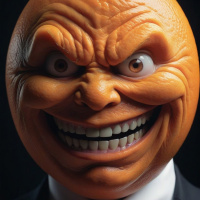a sense of joy or mania. It appears to be a creative representation blending human-like features with the iconic emoji. The background is neutral, which helps to keep focus on the character's expression.