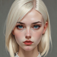 a slight glow around her face and a hint of a red tint on her lips, which might suggest she is wearing lipstick. The background is plain, neutral in color, and doesn't provide any additional context about the setting or location.