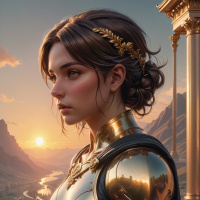a golden armor that shines under what appears to be sunlight, suggesting an important or ceremonial role. The armor includes