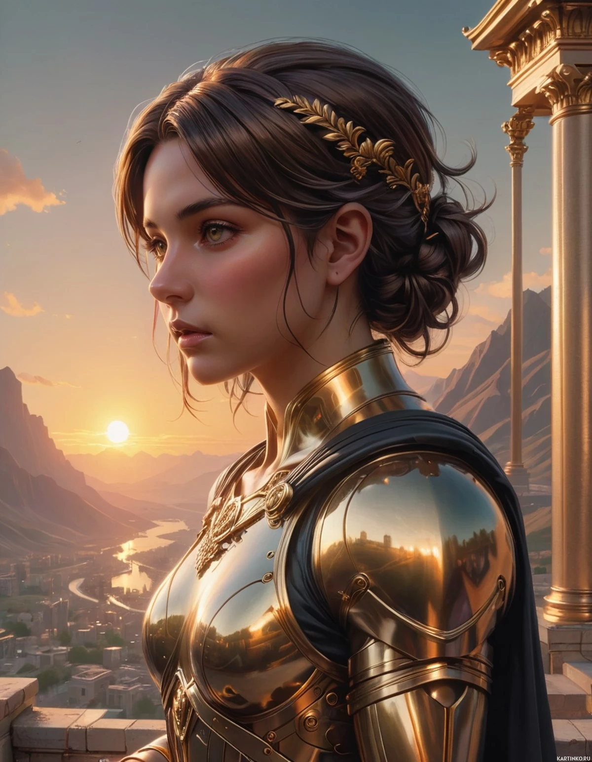 a young woman in a classical or fantasy setting. She has long