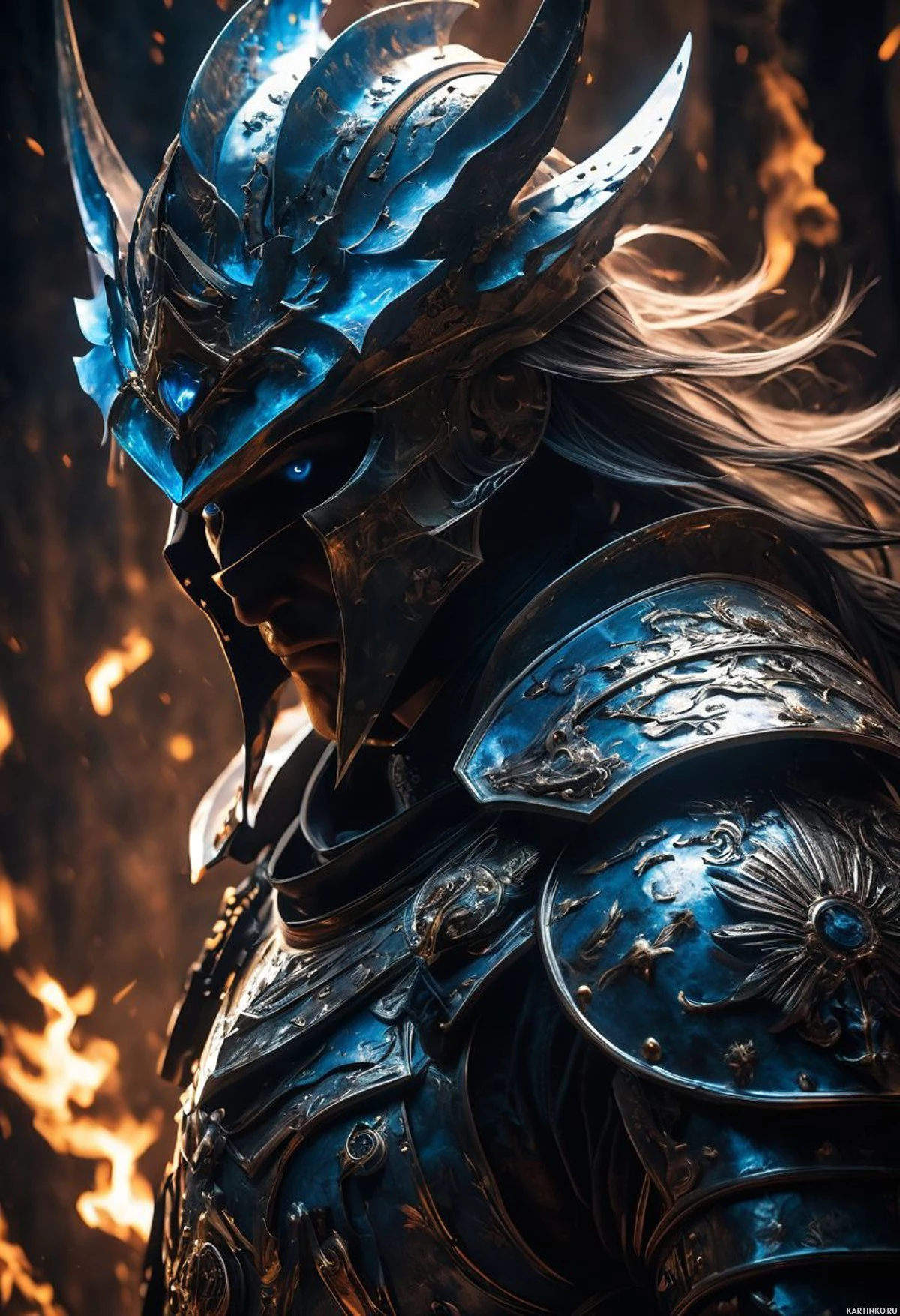 The image depicts a character wearing armor, which suggests they are part of