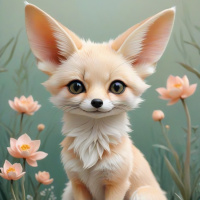 pointed ears characteristic of foxes and a fluffy appearance with a soft-looking fur. It is smiling and has