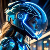 a female character wearing futuristic armor. This armor has a sleek, silver design with intricate details, such as panels and lines that give it a realistic yet sci-fi look. She is also wearing a helmet that complements the suit, featuring visors and what appears to be technology integrated into its design. The character is looking off to the side, exhibiting