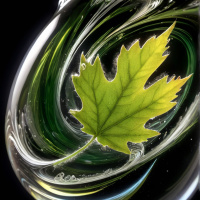 a sense of depth and motion. These rings seem to radiate from the center outward, where they blend into a darker area which might represent space or an abyss. The outermost ring is light blue and becomes progressively lighter as it approaches the top of the image. The overall effect gives an impression of a leaf descending through a series of colorful rings or perhaps representing a journey from the ground to the heavens or vice versa.