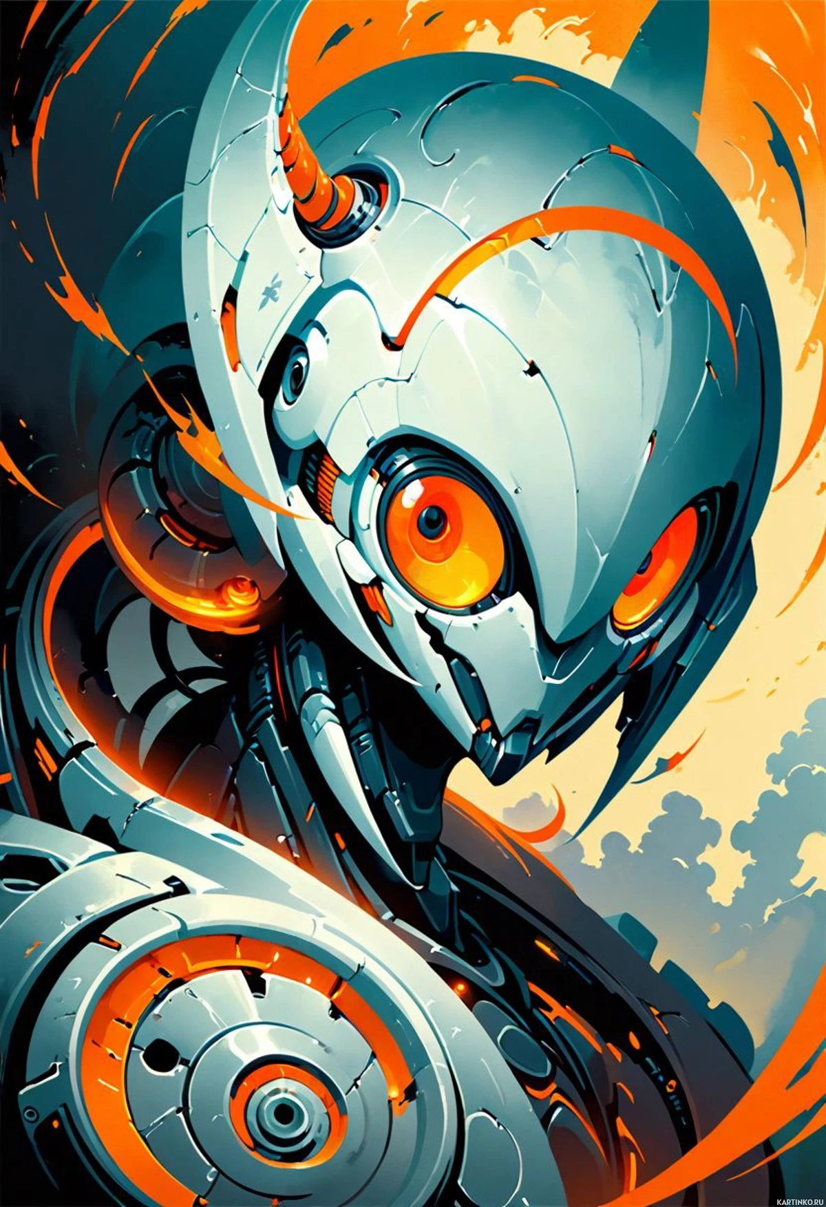 science fiction and fantasy genres, capturing a moment that could be from a comic book, video game, or concept art for a story about artificial intelligence or cybernetic enhancements in a futuristic world.