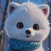 expressive eyes and a small pink nose. It has a whimsical appearance, with subtle details such as a soft fur texture and