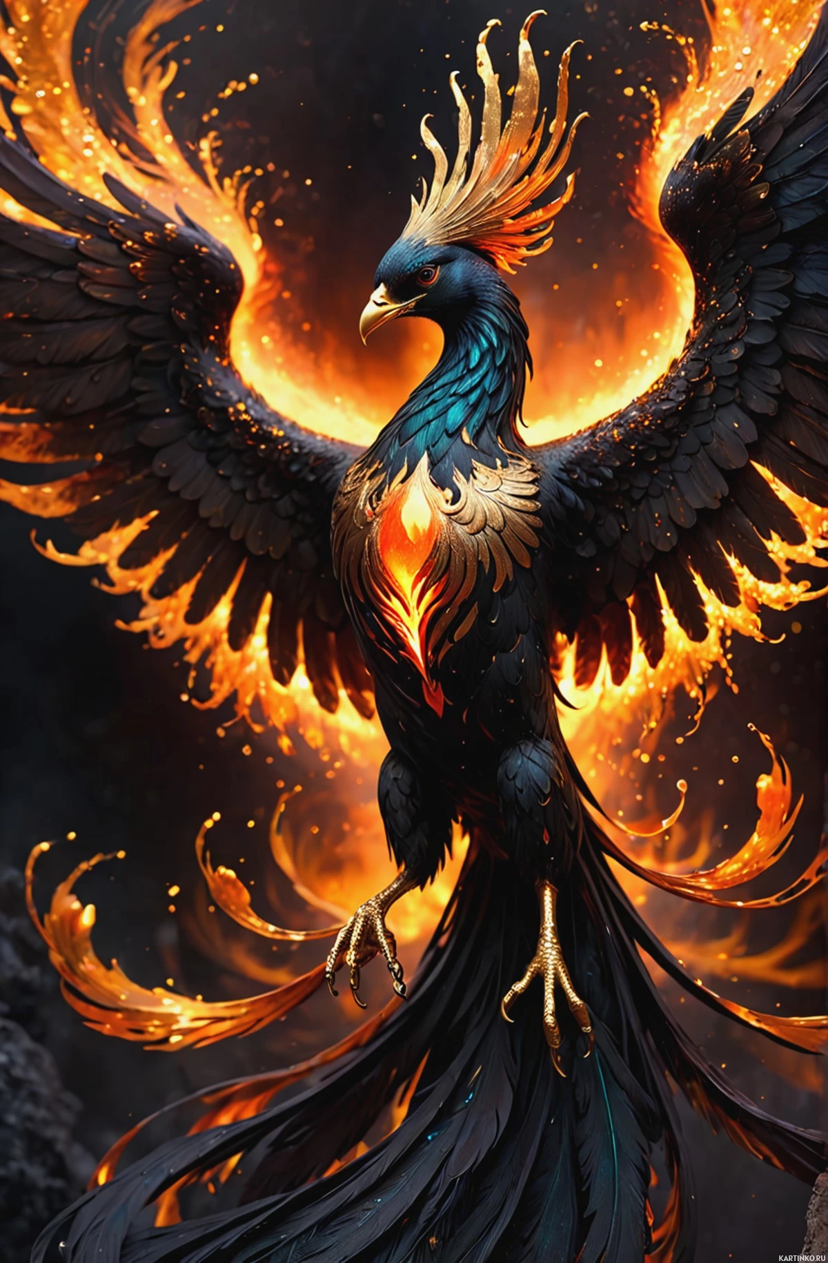The image depicts a fantasy-themed illustration of a phoenix,