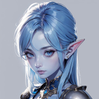 blue tones. The character is depicted wearing armor that appears to be of a high-quality design, suggesting she may be a warrior or guardian of some kind within the fantasy setting where this image takes place. The armor has