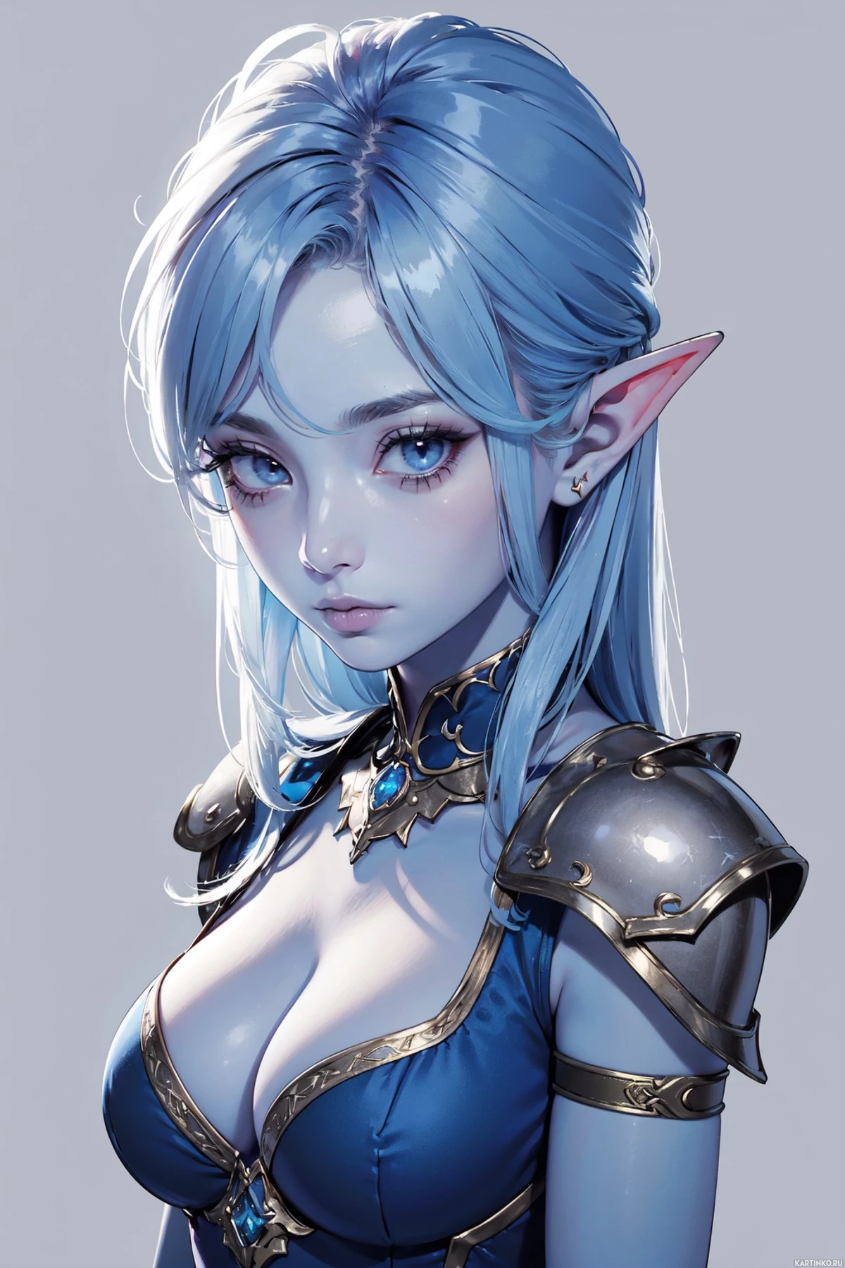a female character with an elfin appearance. She has pointed ears characteristic of an elf, and her hair is styled in light