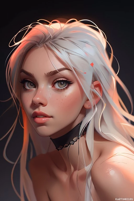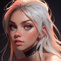 a subtle blush on her cheeks, and she wears what appears to be a black choker around her neck. Her gaze is directed slightly to the side, giving an introspective feel to the artwork. The overall style of the image is realistic with