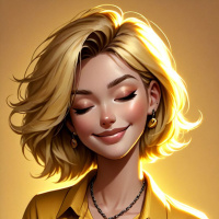 a young woman with blonde hair. She has her eyes closed and appears to be in a moment of calm or relaxation. The character is wearing a bright