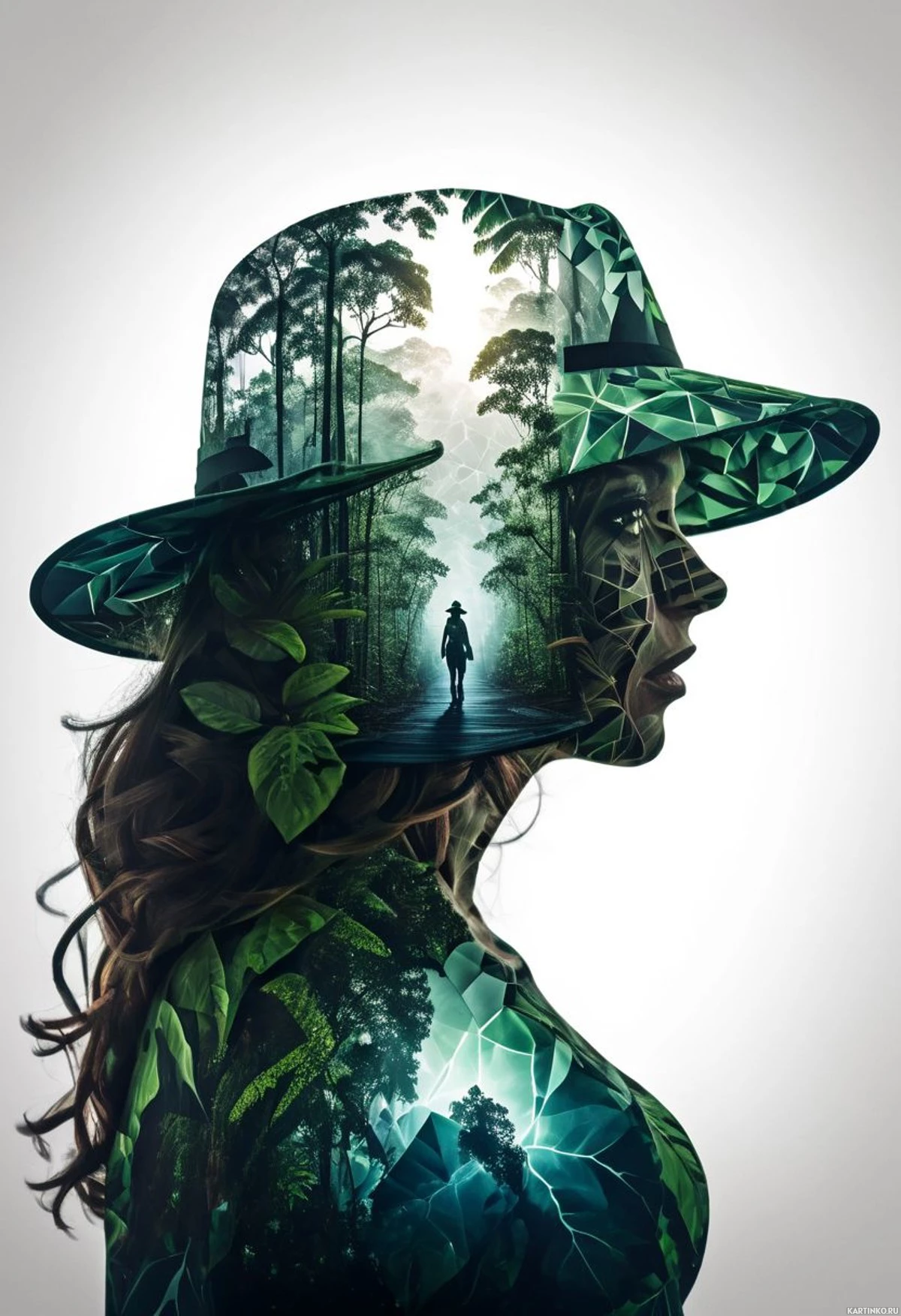 a forest scene on her chest, with a silhouette of a person walking through it. This could be interpreted as
