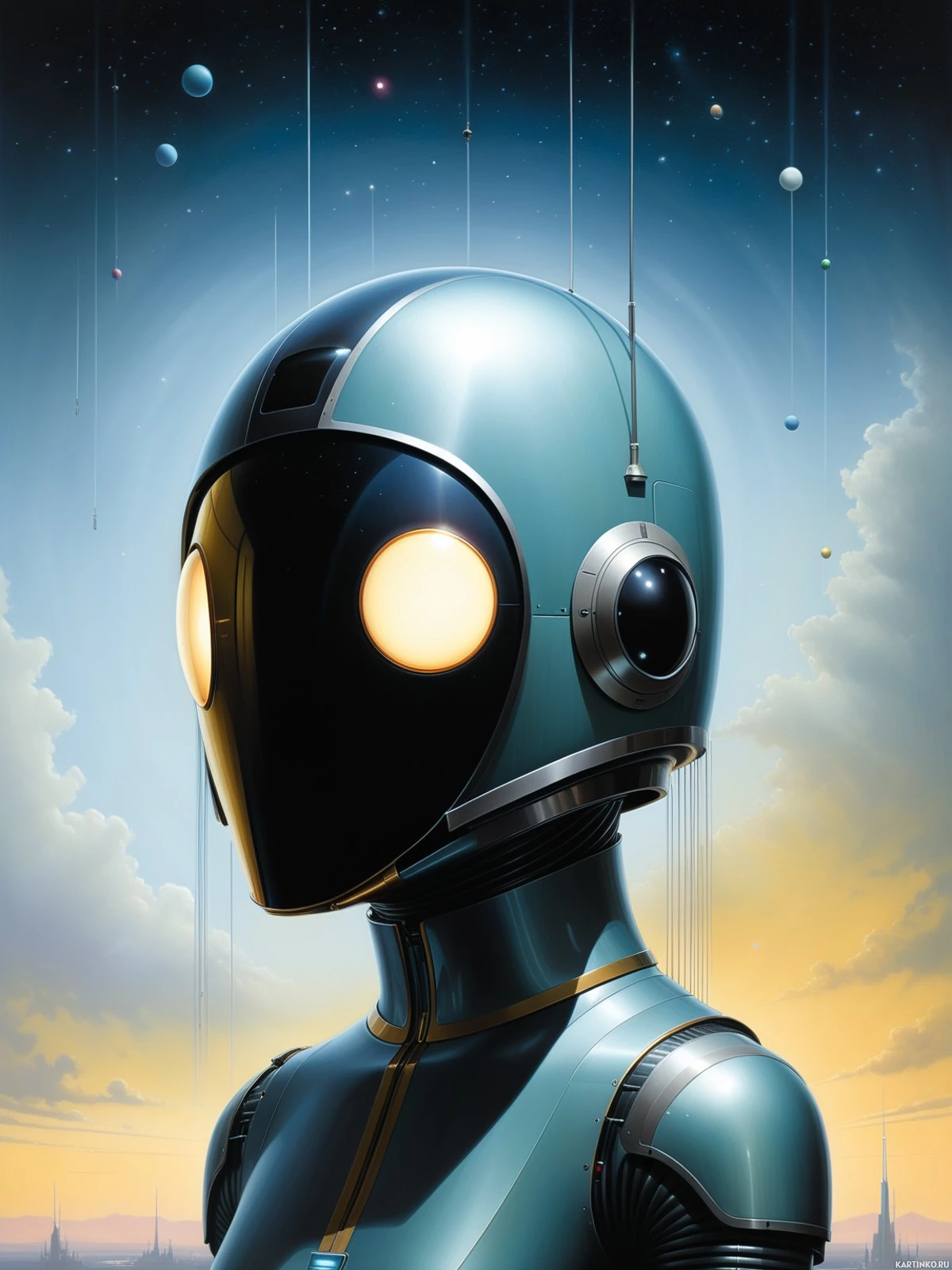 a space exploration theme, with stars and planets, possibly representing a galaxy or cosmos. There is also a hint of a setting sun or other light source providing