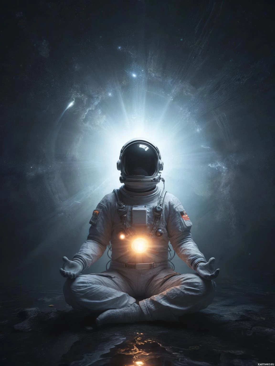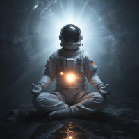 a meditative pose, typically associated with yoga. The astronaut is wearing a traditional white