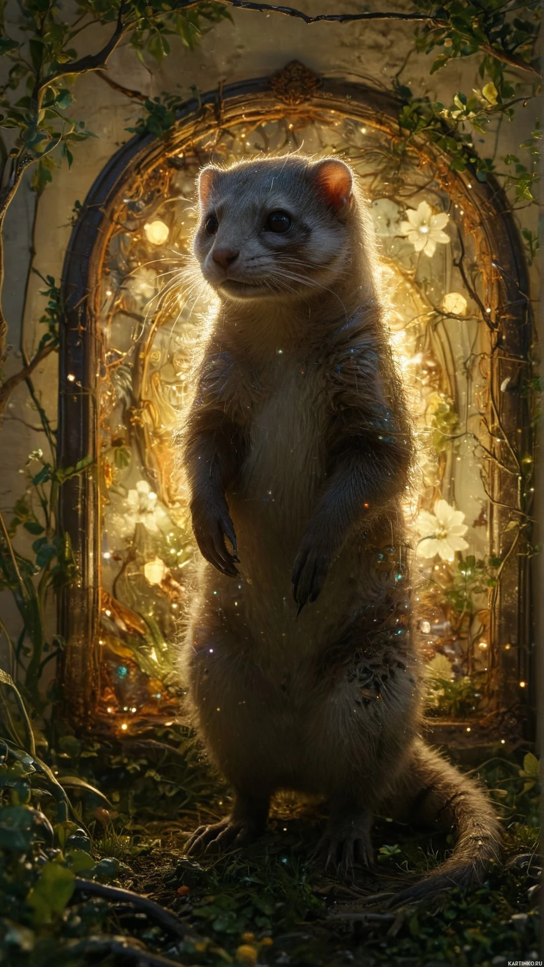 The image features a ferret, which is an animal known for its distinctive appearance with