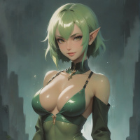 pointed ears and the typical fantasy aesthetic. The character is wearing an outfit that resembles armor or possibly swimwear, with
