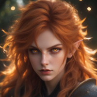 red hair and pointed ears, commonly associated with elves in fantasy settings. The individual is wearing what appears to be armor with