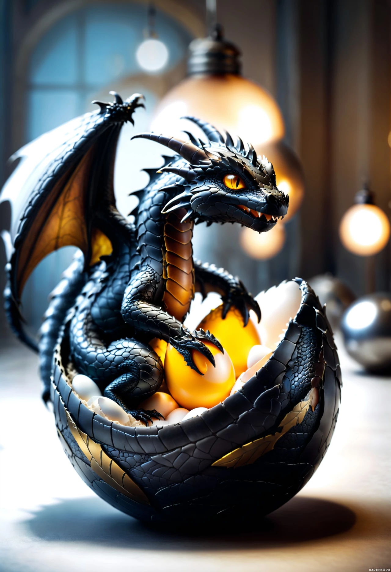 a fantastical event, as if the dragon were about to spring into action from its egg.