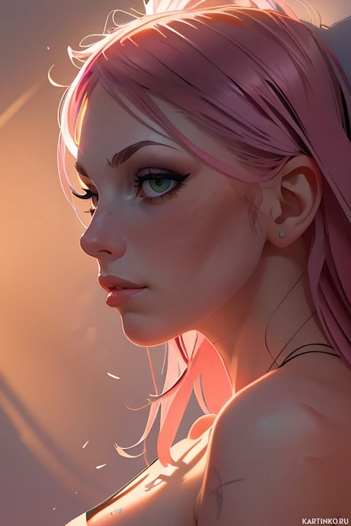 expressive eyes and a small mole on her left cheek. Her skin appears to be glowing or reflective, suggesting she might have some sort of magical or otherworldly element. She is wearing what appears to be an ornate,