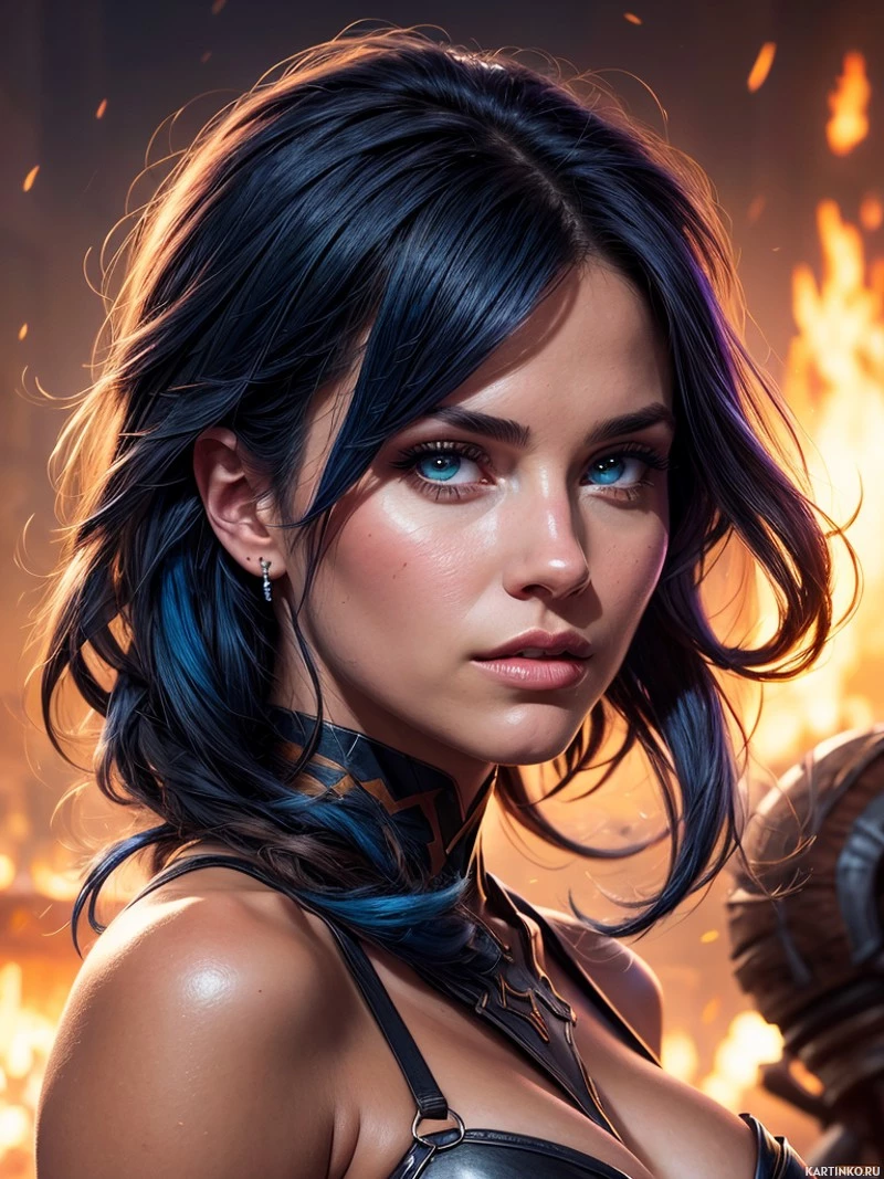 a sense of danger or power. This could suggest she is in the middle of combat or a significant moment within her narrative. The overall style of the image leans towards realism with a fantasy twist, indicative of high-quality digital art used for character designs or promotional materials.