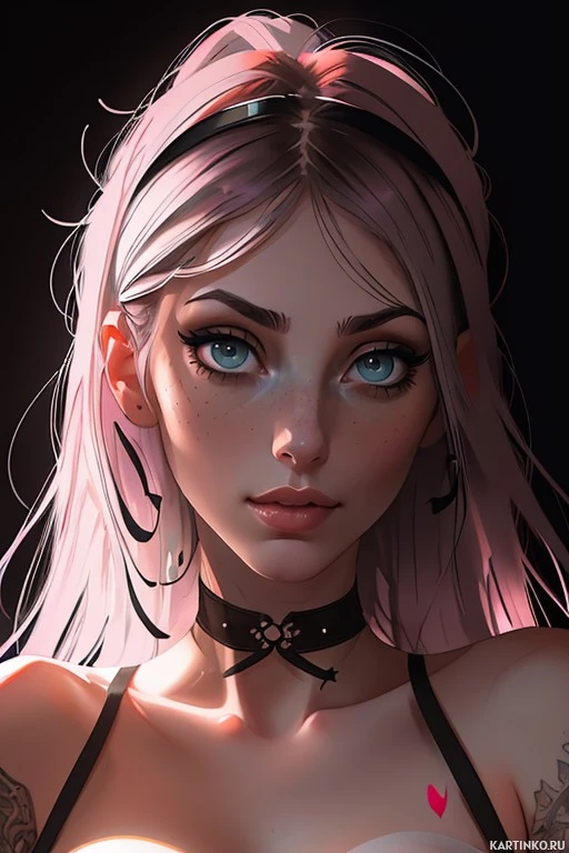 neckline of the top suggests a choker-style design with a bow element on the left side. There are also earrings visible on both sides of her head, contributing to her fashionable and trendy style. The lighting in the image casts a gentle glow on her face, which could be due to natural light or an intentional lighting effect within the image itself. The overall composition of the photo suggests it is a professional portrait, possibly for modeling purposes or as a piece of digital art.