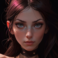 a neutral expression with slightly parted lips that give her a contemplative or serious look. She appears to have
