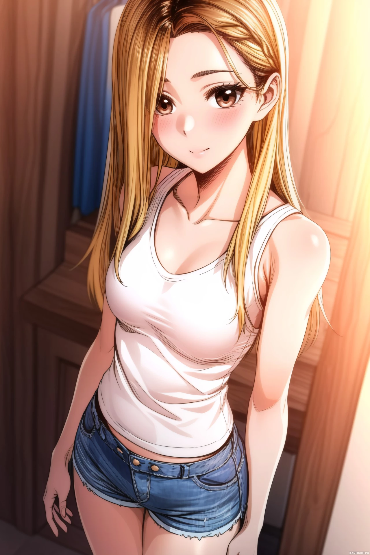 Девушка в стиле аниме с золотистыми волосами и голубыми глазами Картинки с такими же тегами