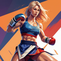 The image features a female figure who appears to be engaged in boxing. She is wearing athletic attire and holding boxing gloves, with her posture suggesting she's in the midst of punching or training. Her hair is styled in a manner that suggests movement and dynamism. The background has abstract elements that suggest energy and motion.