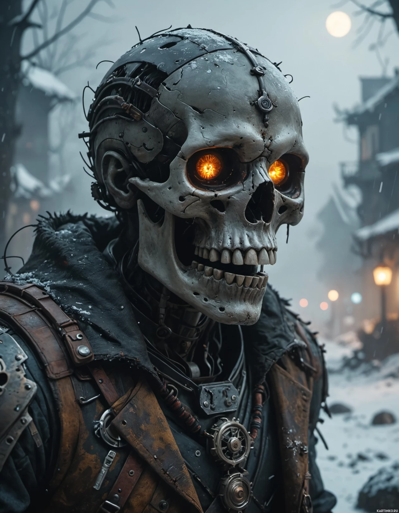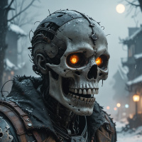 The image depicts a character that appears to be a blend of human and robotic features, often associated with