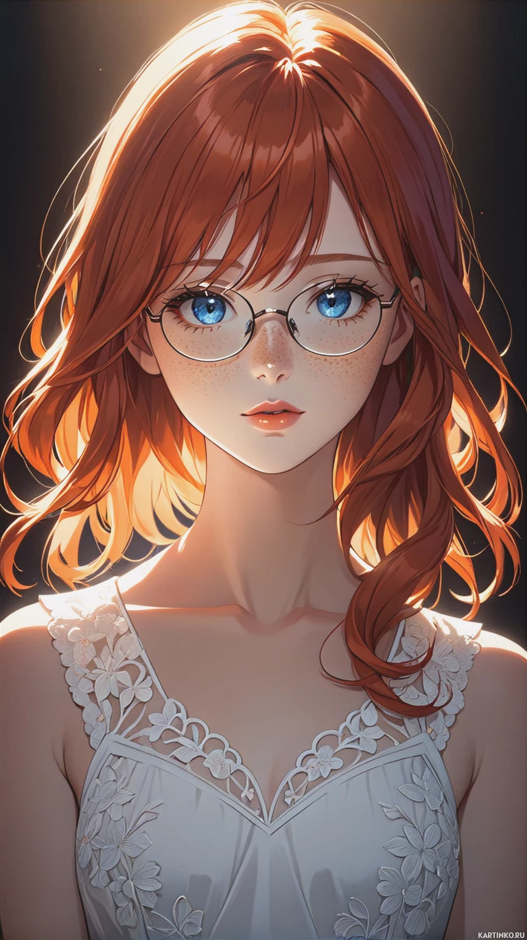 рыжие волосы | Red-haired | Красивая аниме девушка с рыжими волосами и коричневой оправой