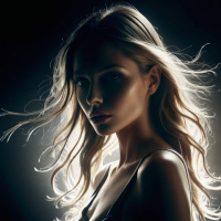 gentle shadows on her face and adding depth to the image. The overall tone of the photograph has a cool and moody atmosphere.