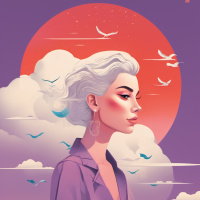 an impression of contemplation or observation. The overall atmosphere of the image is serene and somewhat surreal, emphasized by