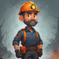 an illustrated character, a man dressed in work attire, including a hard hat. He appears to be standing outdoors with