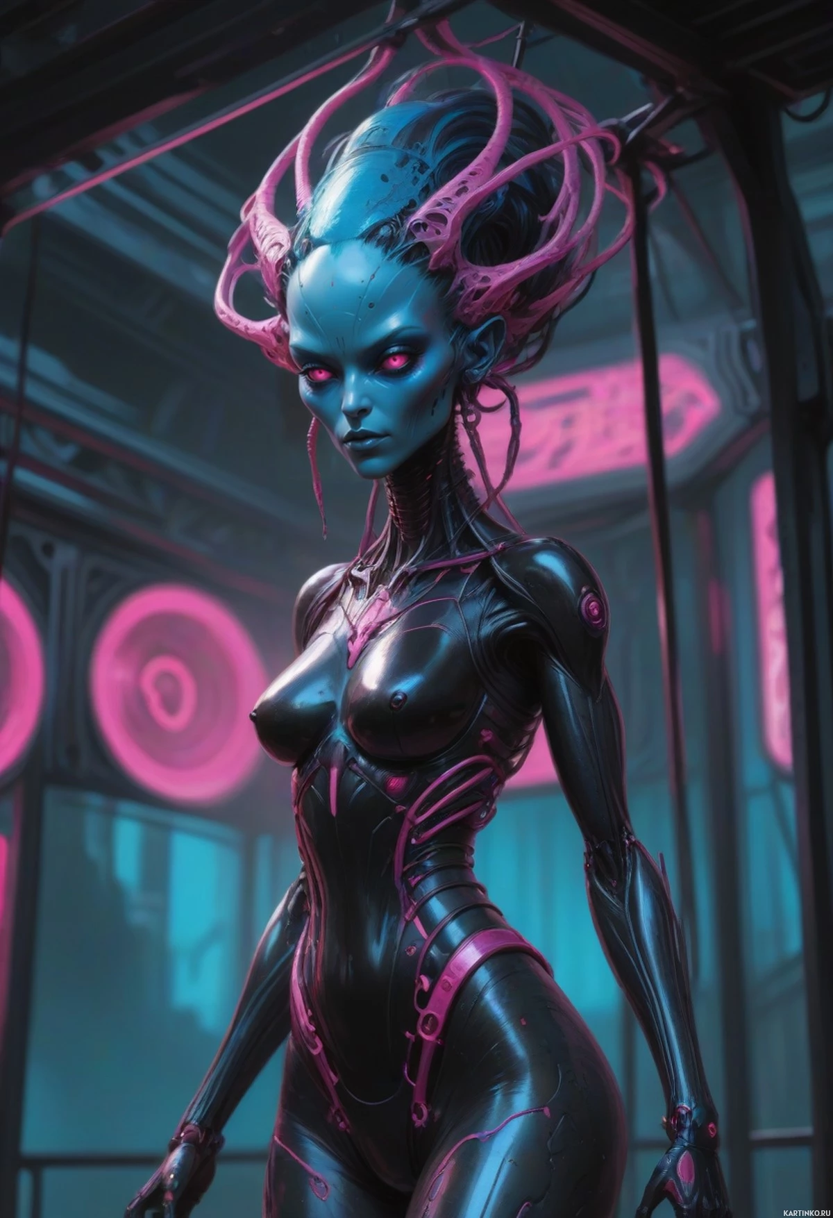 The image depicts a humanoid figure with an alien-like appearance, suggesting it might be from