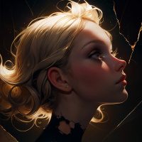 The image portrays a character who appears to be a blonde girl, though it's important to note that the hair color is likely an effect of