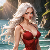 Великолепная беловолосая красавица в красном у моря Картинки с такими же тегами