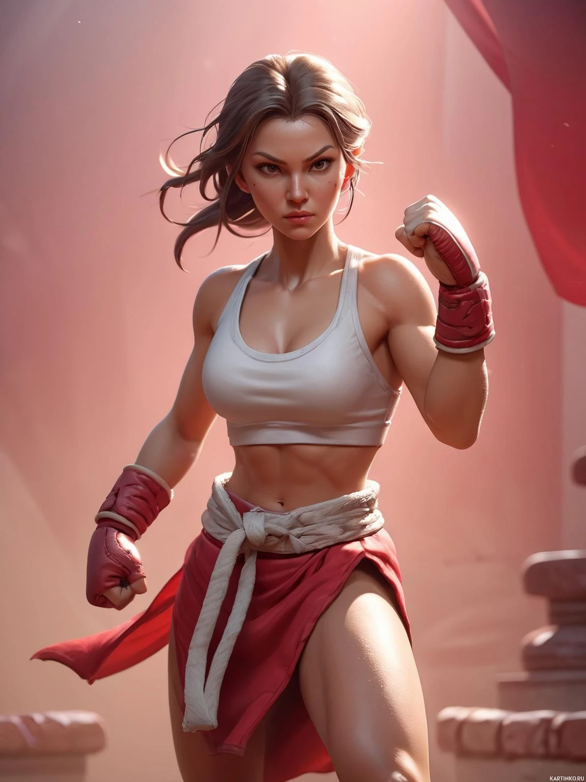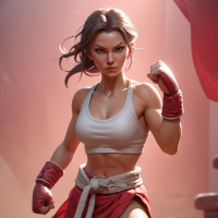 a female character engaged in what appears to be a fighting or boxing pose. She is wearing