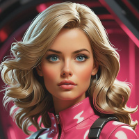 blonde hair and blue eyes, with visible makeup that accentuates her features. The character is wearing