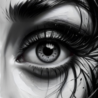 a dark color, contrasting with the light skin tone of the person's face. The overall style of the image gives it a somewhat ethereal or stylized appearance.