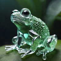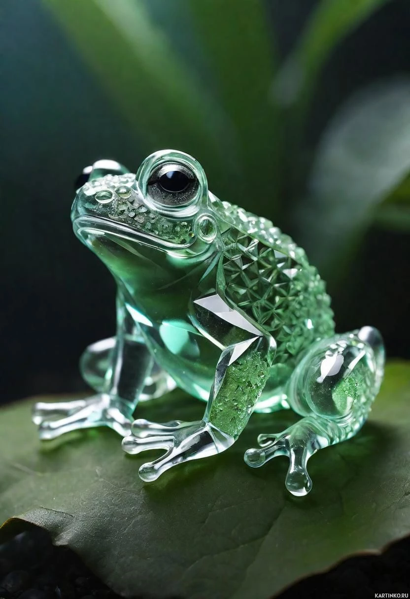 The image features a brightly colored frog. It appears to be sitting on a leaf or some greenery. The frog has vivid, naturalistic colors that include