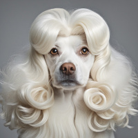 white hair. It is sitting upright on its
